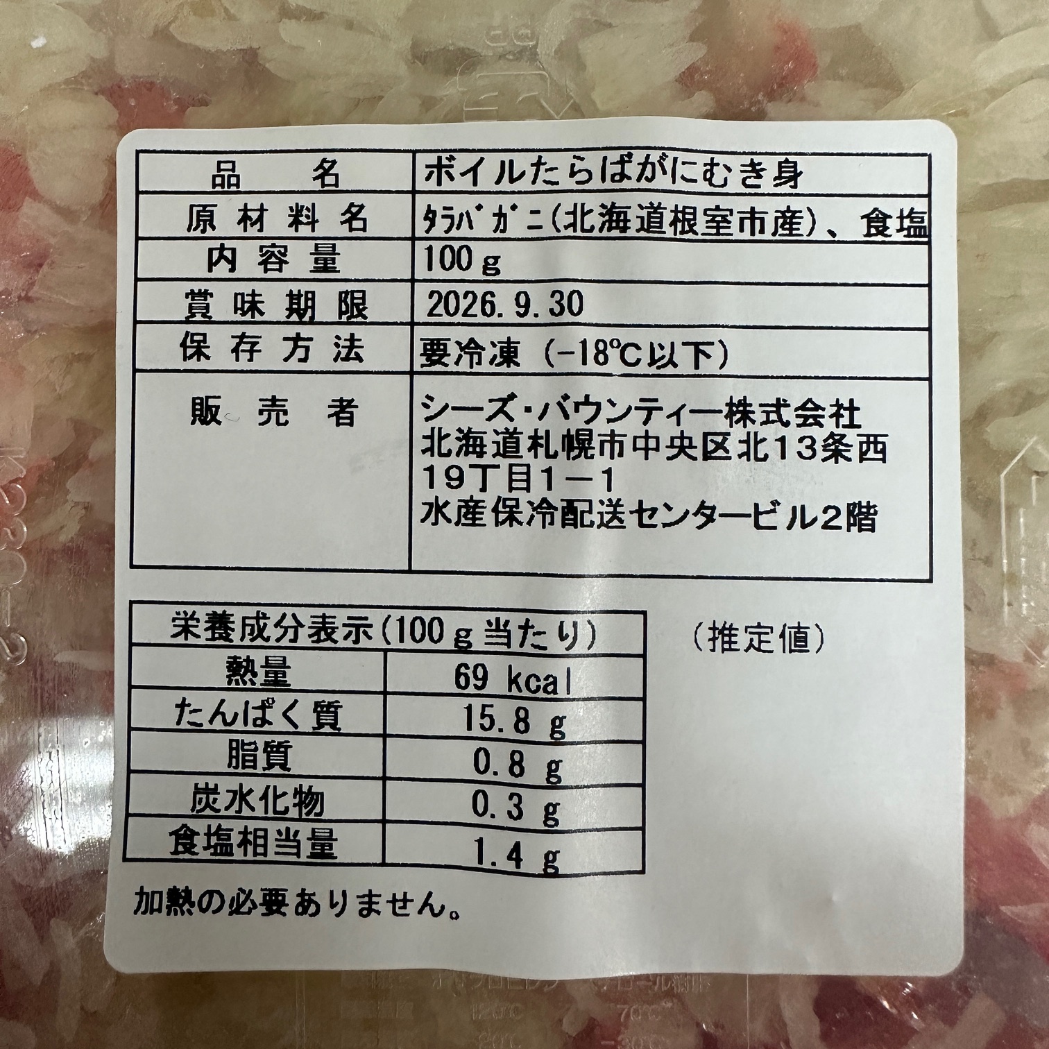 冷凍ボイルタラバガニむき身100g×2