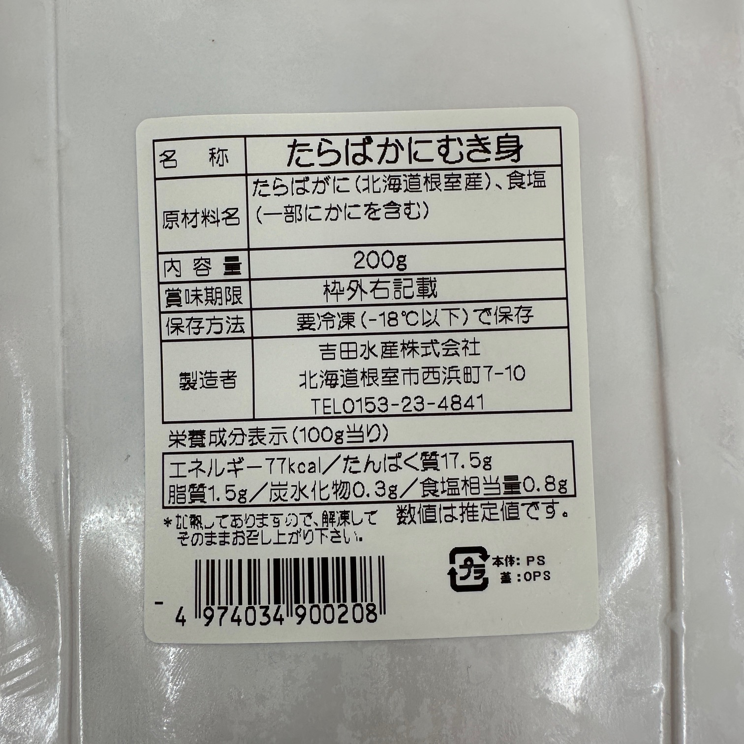 冷凍ボイルタラバガニふんどし200g×2